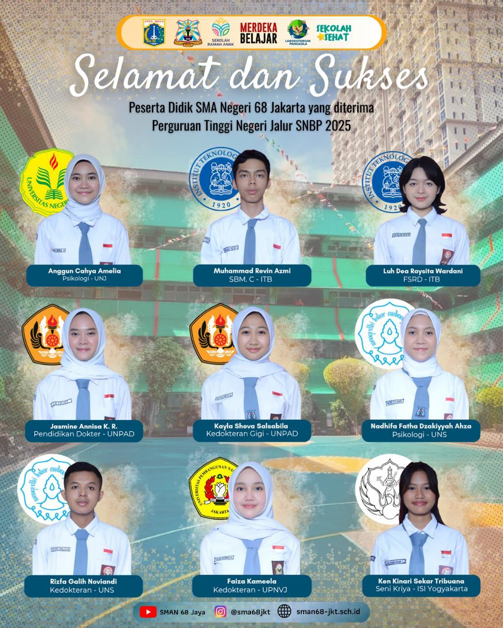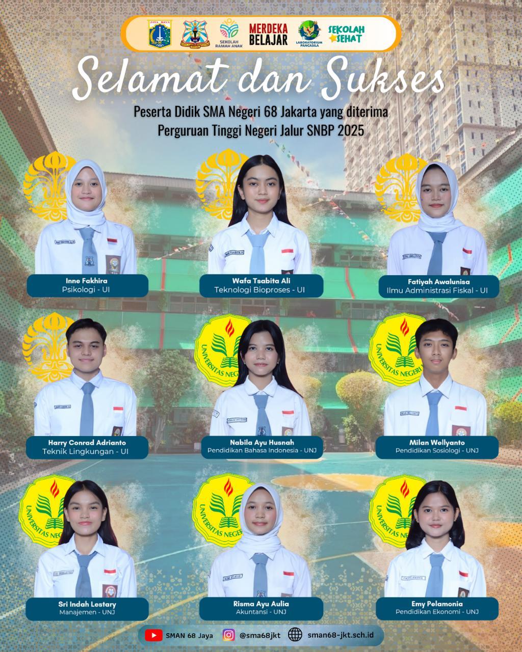Assalamu’alaikum Warahmatullahi Wabarakaatuh. Selamat datang di website SMA Negeri 68 Jakarta.